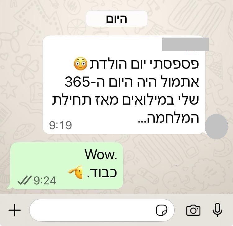 שנית, לסתירה בדבריו. אני שנמצא בעזה בסבב שני של צו 8 בכלל רואה בזה זכות לשרת במילואים. מי שחושב שזה נטל לשרת בצבא ולשרת את המדינה מבולבל, זאת זכות.