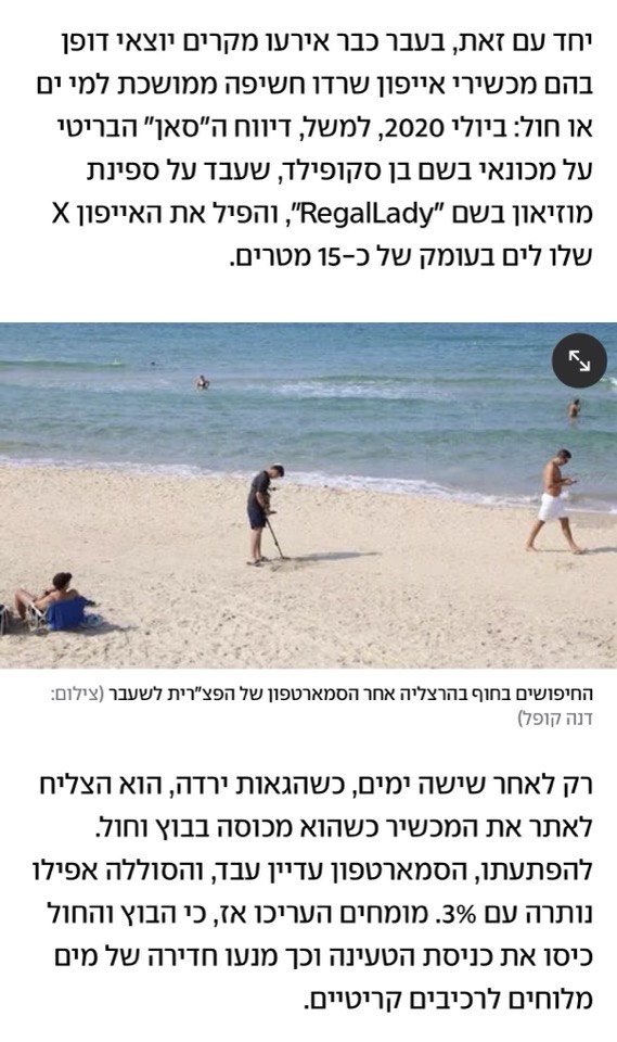 40. אני מכיר אישית מישהו שבסיני מצלם עם האייפון שלו מתחת למים והאייפון בסדר אח''כ (אייפון 14 פרו), אני כן מאמין שאייפון יכול לעבודבתגובה להודעה מספר 39
