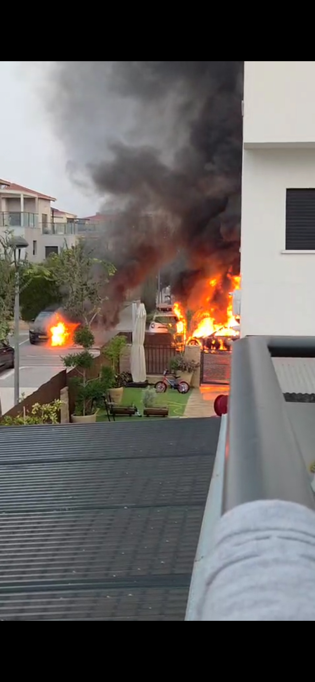 הצתת מספר רכבים בלב שכונה בטבעון, שריפה גדולה במקום.