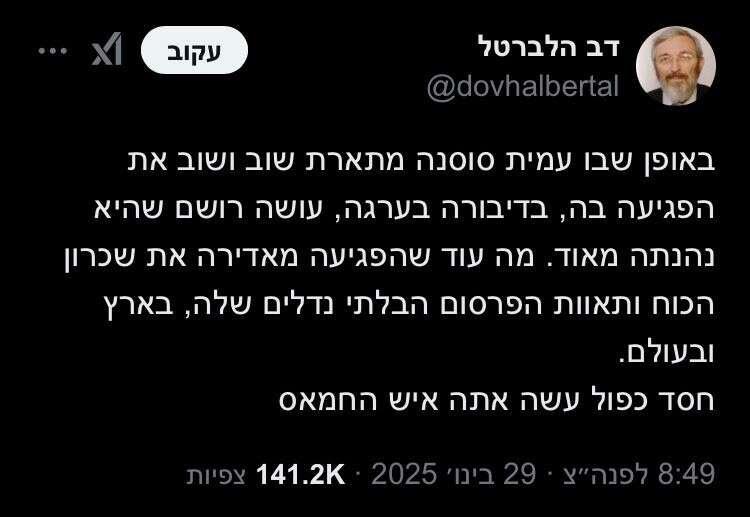 העיתונאי דב הלברטל בעוד אמירה מקוממת להחריד