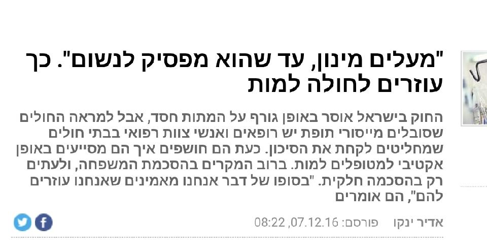 זה נושא פילוסופי אידיאולוגי שאמור להיות נתון בידי האדם שאחראי לחייו וגם לאיך לסיים את חייו.