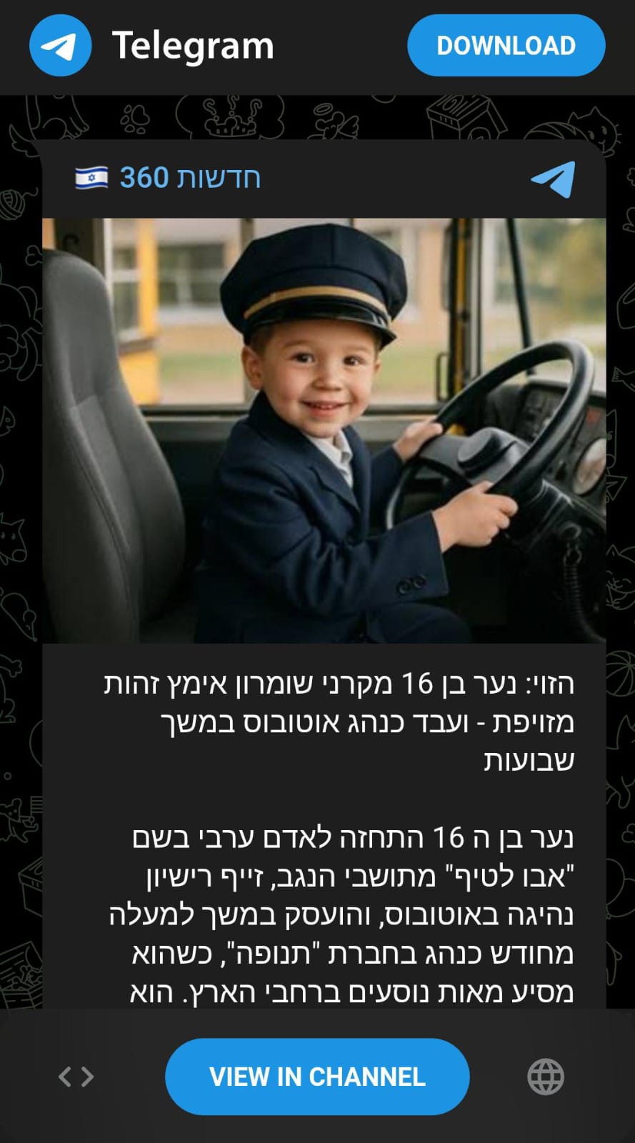 נער בן ה 16 התחזה לאדם ערבי בשם "אבו לטיף" מתושבי הנגב, זייף רישיון נהיגה באוטובוס, והועסק במשך למעלה מחודש כנהג בחברת "תנופה", כשהוא מסיע מאות נוסעים ברחבי הארץ. הוא עבר ריאיון, בדיקות ובחינת נהיגה בחברה. בסוף דצמבר, נעצר על ידי שוטרים סמויים מתחנת אריאל בזמן שהסיע נוסעים מרעננה לקדומים. נגדו הוגש כתב אישום בגין התחזות, זיוף ונהיגה ללא רישיון.| סטטיסטיקאי | 08.01.2610:08 |