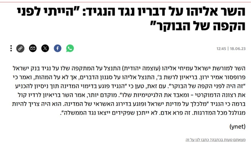 147. השר עמיחי אליהו אומר דברים ידועים ורוצה לחזק את תחושת הבטחון שלנובתגובה להודעה מספר 0